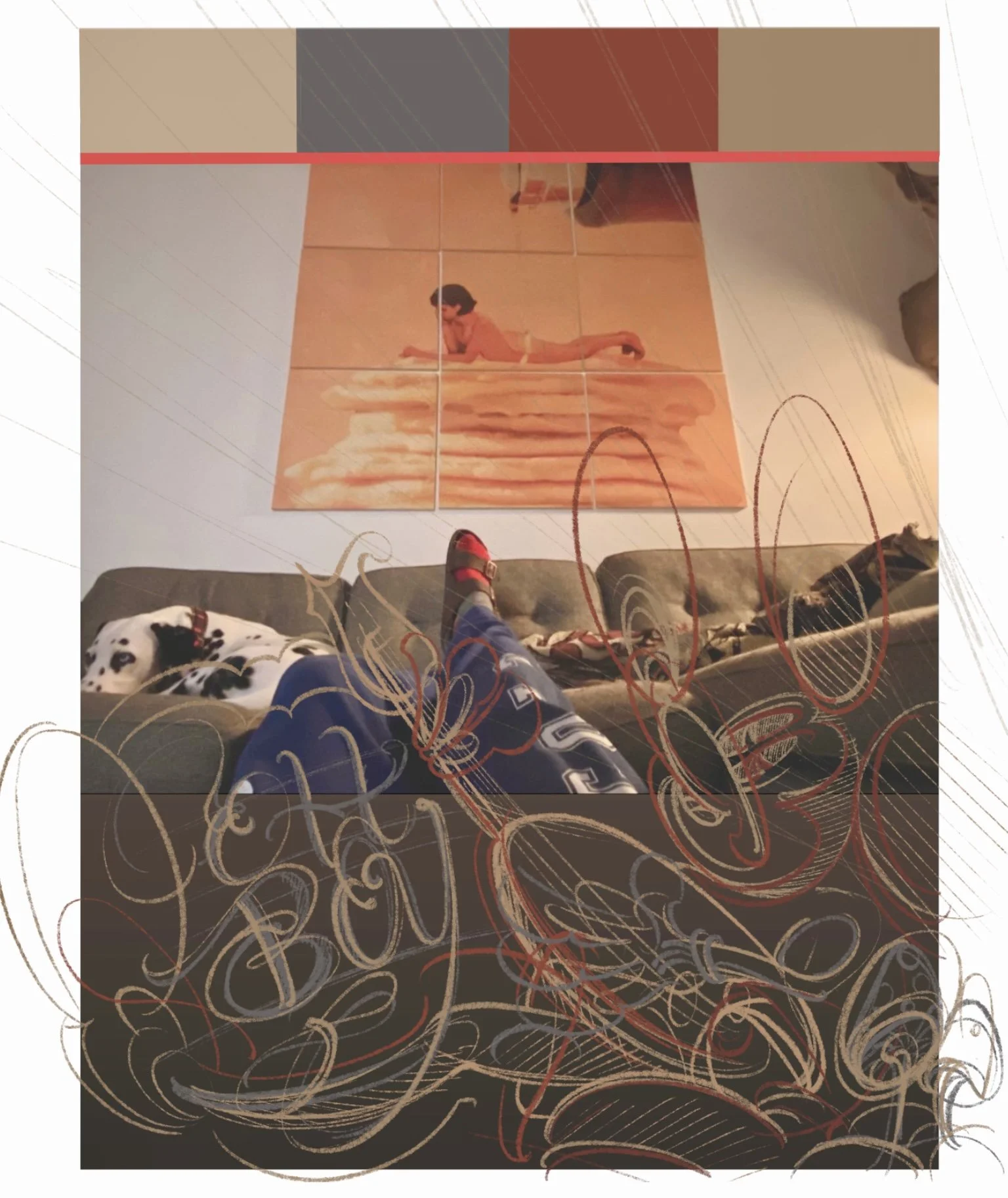 Above me, a massive print: a woman lying on a stack of pancakes.