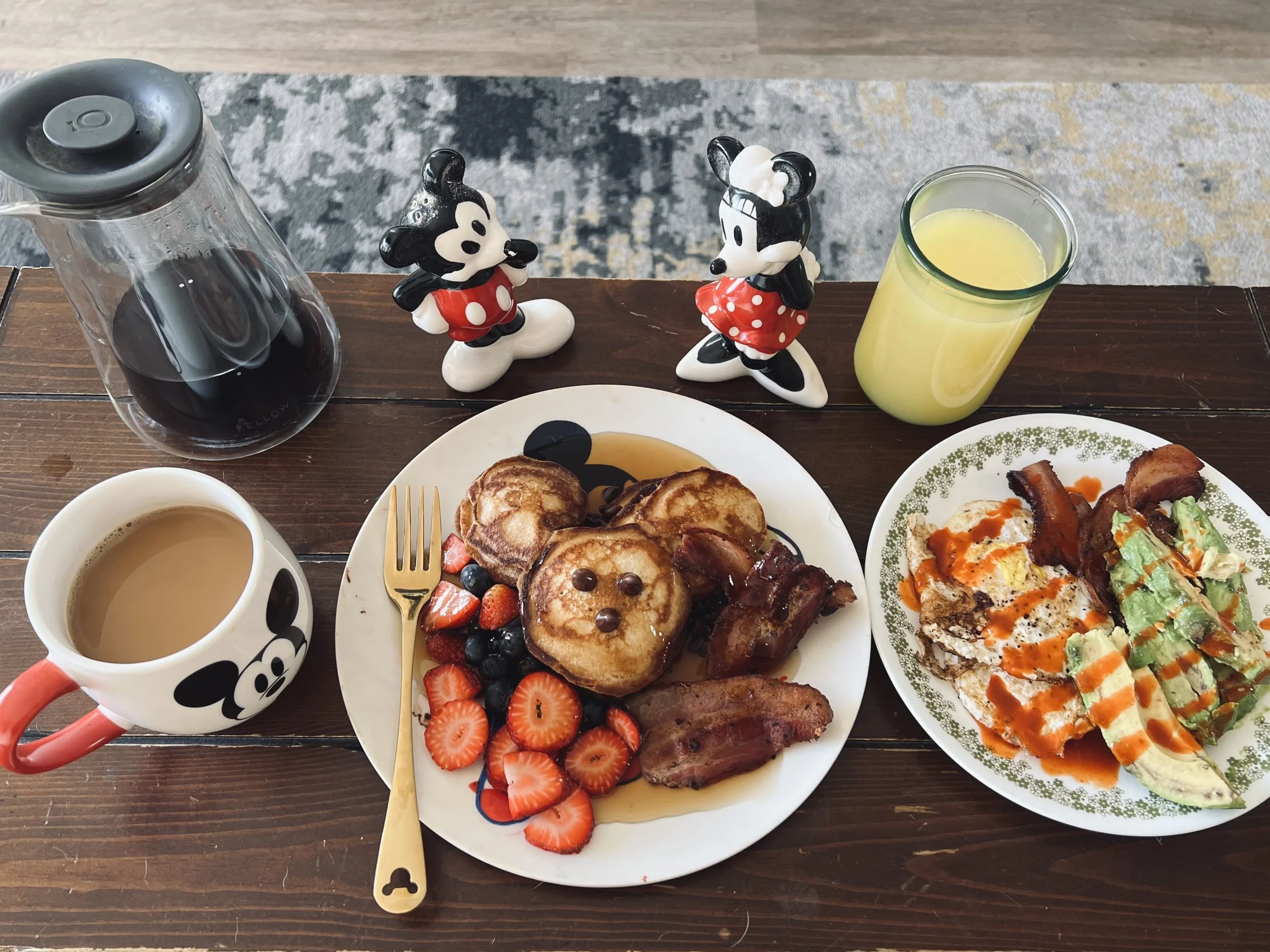 There’s a comfort in ritual, even when you don’t realize you’re leaning on it. My Sundays in 2022 had a shape to them. Coffee poured into a Mickey mug, pancakes in the shape of his head, bacon crisp enough to bite through without thinking. A little hot sauce on the eggs, avocado sliced clean. Minnie and Mickey salt-and-pepper shakers stood guard on the table like old friends.